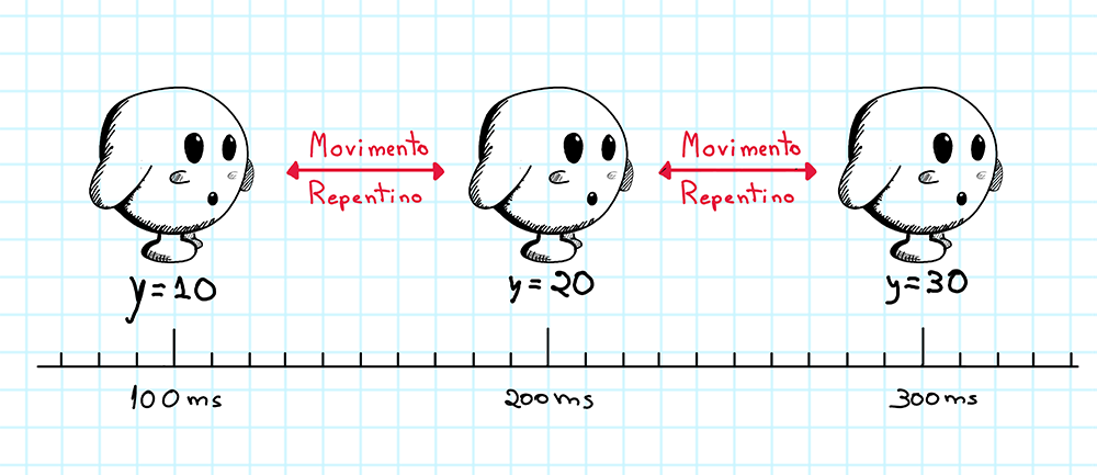 Mas como assim preencher as lacunas? Bem, a parte visual de um jogo, assim como um filme ou animação, é desenhada na tela do usuário quadro a quadro. Cada atualização do servidor pode ser considerada um quadro. Mas, como já sabemos, só temos disponíveis em nosso histórico quadros demasiadamente espaçados uns dos outros, então faremos com que o programa crie quadros intermediários para o jogador utilizando a fórmula da interpolação, substituindo os espaços vazios entre cada informação recebida.